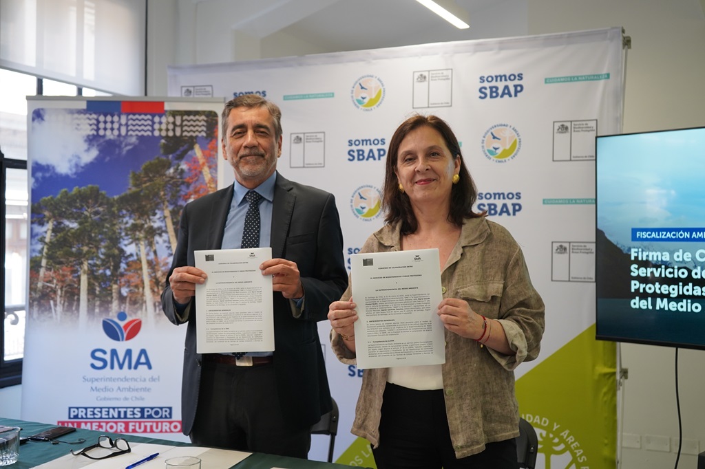 El Servicio de Biodiversidad y Áreas Protegidas (SBAP) y la Superintendencia del Medio Ambiente (SMA) firmaron un convenio de colaboración que permitirá articular el trabajo entre ambas instituciones, fortalecer la fiscalización ambiental y consolidar la coordinación del sistema de cumplimiento ambiental del país, en el marco del inicio de operaciones del nuevo Servicio encargado de la conservación de la biodiversidad.